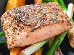 Almuerzo: salmón a la parrilla con mostaza, queso con queso, queso, queso crema.